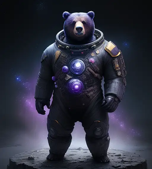2 years ago the bear is dressed Thanos and standing in an outer space suit, in the style of brushwork exploration, firecore, photo-realistic techniques, angura kei, soggy, cute and dreamy, frostpunk --ar 10:13 b3cf0e64f69 0 65