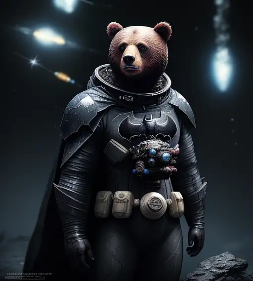 2 years ago the bear is dressed Batman and standing in an outer space suit, in the style of brushwork exploration, firecore, photo-realistic techniques, angura kei, soggy, cute and dreamy, frostpunk --ar 10:13 b3cf0e64f69 0 46