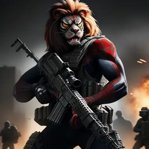 2 years ago Battle-scarred angry spiderman lion army wearing black ops uniform, holding carbine rifle, anthropomorphic, super detail, ultra hd, 8k, real life, maximum facial detail, cinematic lighting --ar 9:16 --q 2 --s 750 b3cf0e64f69 0 51