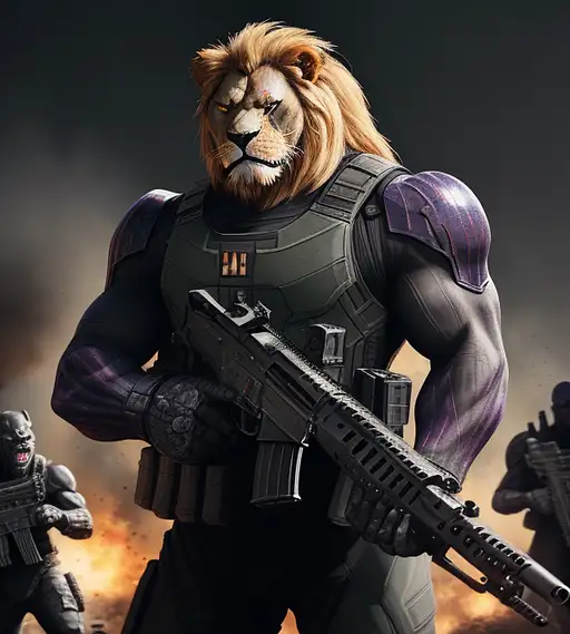 2 years ago Battle-scarred angry iron man lion army wearing black ops uniform, holding carbine rifle, anthropomorphic, super detail, ultra hd, 8k, real life, maximum facial detail, cinematic lighting --ar 9:16 --q 2 --s 750 b3cf0e64f69 0 110