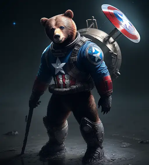 2 years ago the bear is dressed Captain america and standing in an outer space suit, in the style of brushwork exploration, firecore, photo-realistic techniques, angura kei, soggy, cute and dreamy, frostpunk --ar 10:13 b3cf0e64f69 0 56