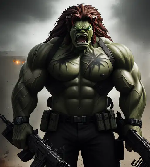2 years ago Battle-scarred angry Hulk lion army wearing black ops uniform, holding carbine rifle, anthropomorphic, super detail, ultra hd, 8k, real life, maximum facial detail, cinematic lighting --ar 9:16 --q 2 --s 750 b3cf0e64f69 0 100