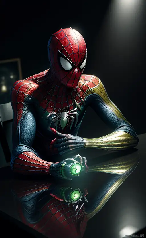 2 years ago handphone on the table with the design and character of spiderman The handphone is gold and red dark, no watermark,no copyright, high gloss, highly detailed, intricate, silver scrollwork, unreal engine 5, octane render, lumen reflections, quixel megascan, 8k, studio lighting, —ar 1080:1920 b3cf0e64f69 0 13