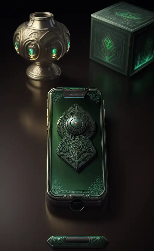 2 years ago handphone on the table with the design and character of thor The handphone is gold and green dark, no watermark,no copyright, high gloss, highly detailed, intricate, silver scrollwork, unreal engine 5, octane render, lumen reflections, quixel megascan, 8k, studio lighting, —ar 1080:1920 b3cf0e64f69 0 21