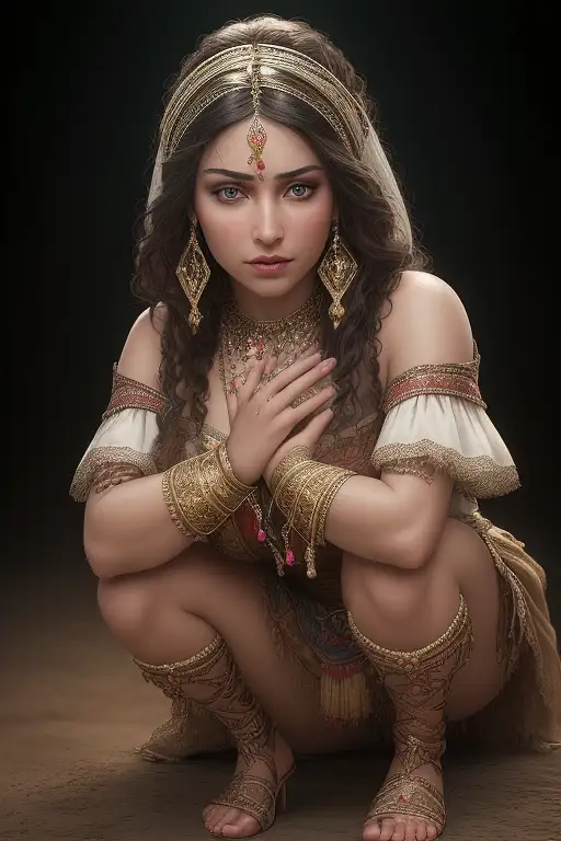 almost 2 years ago photorealistic, ultra highly intricate detailed, professional photo, beautiful woman dressed like a gypsy, (full-body), (Crouching low with hands on the ground, ready for action or play), portrait lighting, subpixel rendering, smooth vertex shading, (best quality, sharp focus, masterpiece, 4k, ultra detailed, sharp focus, 8k, high definition, insanely detailed, intricate:1.1), bokeh, <lora:more_details:1> <lora:epi_noiseoffset2:1> <lora:epiCRealLife:1> b41793e391d 0 54