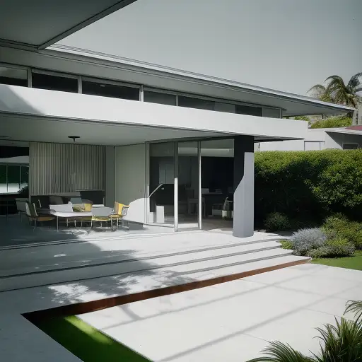 almost 2 years ago Hyper realistic eye level exterior photo of a mid century modern style house overlooking the ocean, daylight, indirect lighting, AD magazine, Frank Lloyd, Eames, Mies van der Rohe((Masterpiece, best quality)), (extremely detailed 8k), (photorealistic), beautiful lighting, best quality, realistic, real picture, intricate details, Beautiful lighting, RAW photo, film grain, full body ((photo of a baby parrot dressed as batman)), in a scenario of nuclear destruction, riding the batbike b41793e391d 0 75