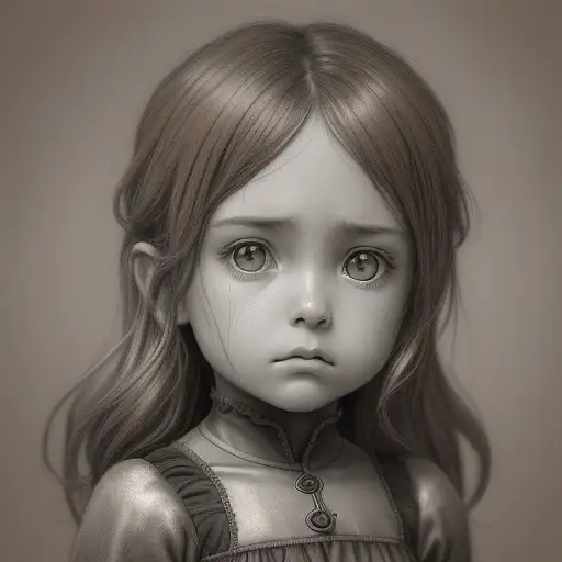 almost 2 years ago pencil sketch in the style of beautiful child, close-up intensity, gray and bronze, rangercore, intense emotions, 19th century style, symmetrical asymmetry --ar 68:128 --stylize 750 --v 5.2, 8K b41793e391d 0 56