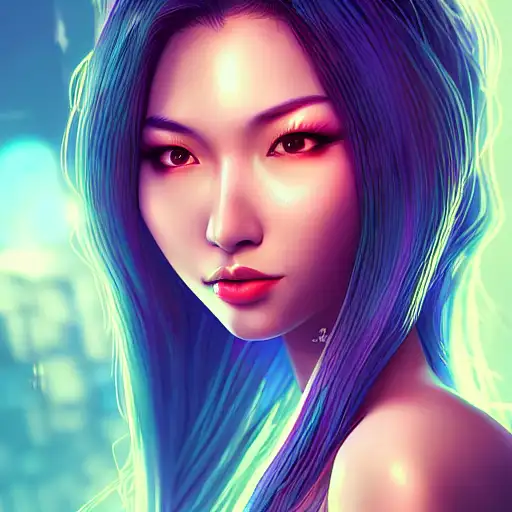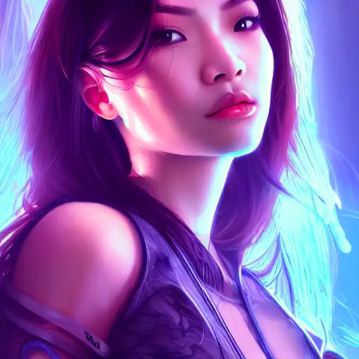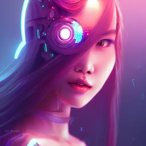 almost 3 years ago beautiful, young Vietnamese woman, cybernetic, cyberpunk, detailed gorgeous face, flowing hair, vaporwave aesthetic, synthwave , digital painting, artstation, concept art, smooth, sharp focus, supernatural, illustration, art by Ross Tran, 8ff b446cffa057 0 110