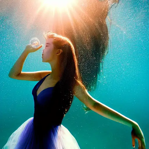 almost 3 years ago underwater photography portrait of a young Vietnamese girl, dress, floating hair, bubbles, sun light breaking through water surface, by Ross Tran b446cffa057 0 150