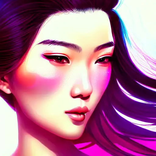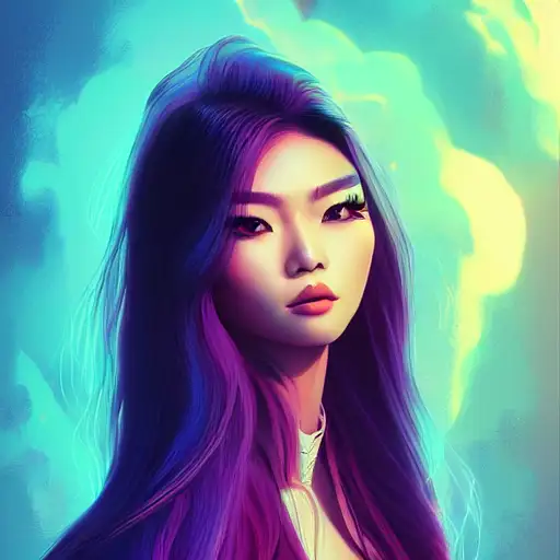 almost 3 years ago beautiful, young Vietnamese woman, supernatural, detailed gorgeous face, flowing hair, vaporwave aesthetic, synthwave , digital painting, artstation, concept art, smooth, sharp focus, illustration, art by Ross Tran, 8ff b446cffa057 1 93