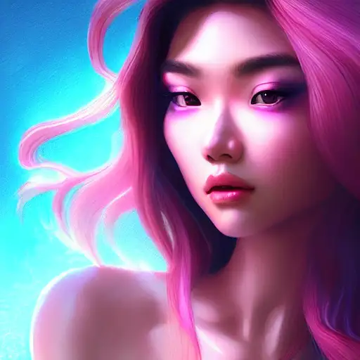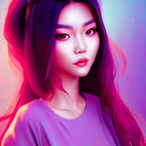 almost 3 years ago beautiful, young Vietnamese woman, supernatural, detailed gorgeous face, flowing hair, vaporwave aesthetic, synthwave , digital painting, artstation, concept art, smooth, sharp focus, illustration, art by Ross Tran, 3D b446cffa057 0 77
