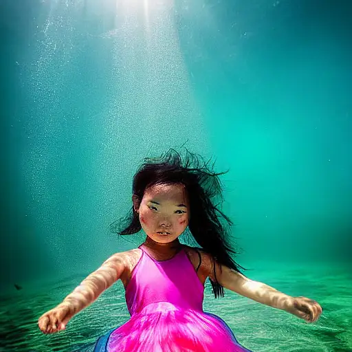 almost 3 years ago underwater photography portrait of a young Vietnamese girl, dress, floating hair, bubbles, sun light breaking through water surface, by ted grambeau b446cffa057 0 90