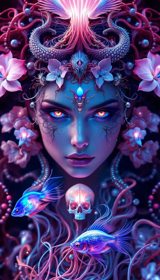 8 months ago Goddess close-up portrait ribcagel. jellyfish phoenix head, nautilus, orchid, skull, betta fish, bioluminiscent creatures, intricate artwork . octane render, trending on artstation,t symmetrical artwork. cinematic, hyper realism, high detail, octane render, 8k b4b8cd3d909 0 34