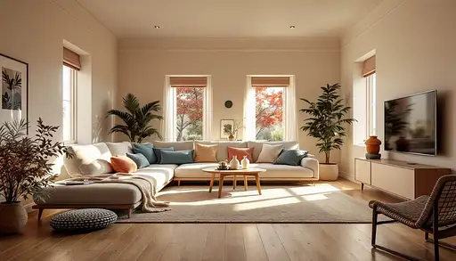 8 months ago High resolution photography interior design, dreamy sunken living room conversation pit, wooden floor, small windows opening onto the garden, bauhaus furniture and decoration, high ceiling, beige blue salmon pastel palette, interior design magazine, cozy atmosphere; 8k, intricate detail, photorealistic, realistic light, wide angle, kinkfolk photography, A+D architecture b4b8cd3d909 0 25