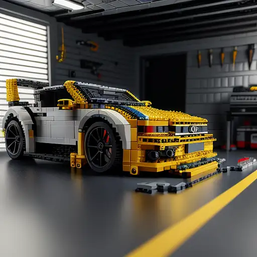 almost 2 years ago A Lego car in a garage scene, lego set, highly detailed, intricate, technical, unreal engine 5, 8k, --ar 3:2 --testp --upbeta b7aec5f1396 1 68