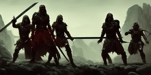 almost 3 years ago Three human warriors with sword surrounded by short mutants like dog, cave, dark, cinematic, establishing shot, photorealistic, highly detailed, blood in ground, epic fight scene, post processed, concept art, artstation, matte painting, style by greg rutkowsky b948e19ec2a 0 80