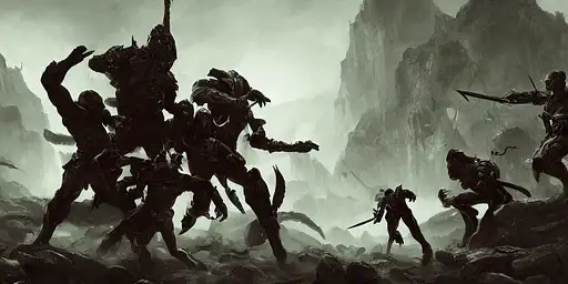 almost 3 years ago Three warriors fighting a monsters, Monsters are short and walk on four feet, epic duel, dark cave , action scene, cinematic, rough brush strokes, in a dark style --q 2 --card --s 6000 --style Seb McKinnon, Jason Chan --v 3 b948e19ec2a 1 150