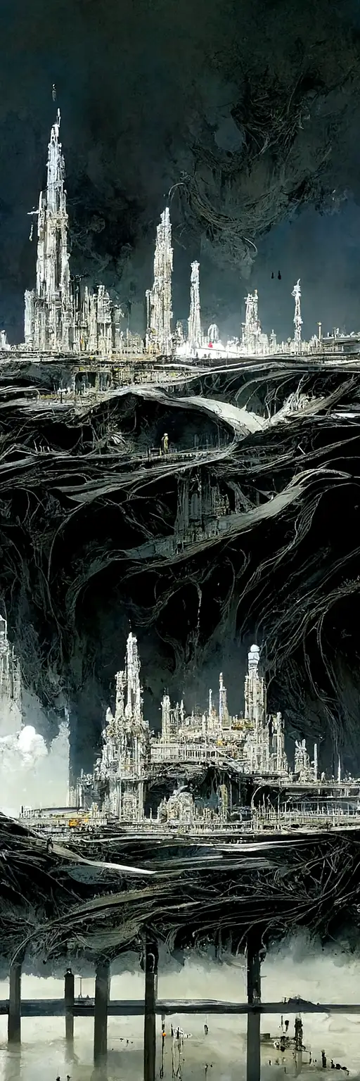 3 years ago epic landscape, Architectural section, Tsutomu Nihei painted biotech mystical architecture of megastructures::3 surrealism, sun rays:1.1 rule of thirds, ultrarealistic, dramatic lighting, landscape, beautiful, gorgeous, hyper detail, hd, 8k, 3d, octane render Unreal Engine, animated art, cinematic, trending on artstation --w 1200 --h 3600 --no lines --no person --q 2 Midjourney 140 940