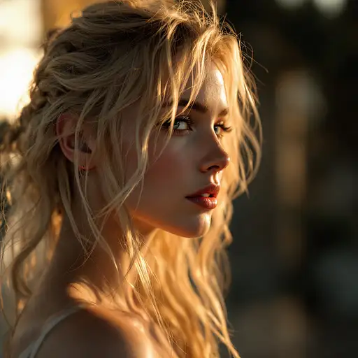 7 months ago Realistic, RAW photo, Sony Alpha A7 II Mirrorless Digital Camera, Canon EF 24-70mm f/2. 8L II USM Lens, The Selens 5-in-1 39. 4â³ Triangle Reflector, INTRICATE, WOMAN, Blond Hair, (Any Age) , Blond hair, opened legs, Full-body shot of a stunning blonde woman seen from behind, leaning elegantly on a balcony railing overlooking the vast ocean. Her entire silhouette is visible from head to toe, dressed in a flowing, Her golden blonde hair cascades down her back, catching the warm sunlight. She slightly turns her head over her shoulder, revealing a hint of her delicate facial features with soft pink lips and bright blue eyes. The background showcases a mesmerizing seascape with deep blue waters stretching to the horizon, under a golden sunset. bea3e2ddec6 0 46