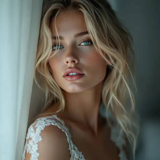 7 months ago Ultra-realistic RAW photo of a beautiful blonde woman, fair skin, blue eyes, soft lips, wearing white lace stockings, sensual pose, cinematic lighting, natural skin texture, soft glow, studio setting, Sony Alpha A7 II, Canon EF 24-70mm f/2.8L II USM, 4K resolution, extreme details, masterpiece, hyper-realistic, artstation trending. bea3e2ddec6 0 33