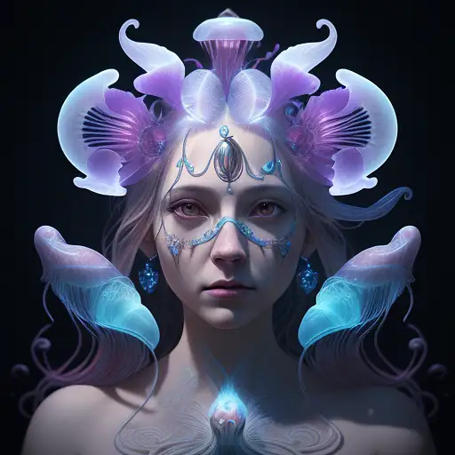 2 years ago Goddess close-up portrait ribcagel. jellyfish phoenix head, nautilus, orchid, skull, betta fish, bioluminiscent creatures, intricate artwork . octane render, trending on artstation,t symmetrical artwork. cinematic, hyper realism, high detail, octane render, 8k bgthornton 0 44