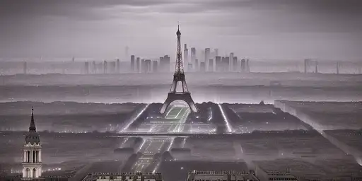 2 years ago High resolution photography Paris skyline in the 1920s including iconic images to feel like a mural, softly muted color painted, lavender tint, looking from south to north. atmosphere; 8k, intricate detail, photorealistic, realistic light, wide angle, kinkfolk photography, A+D architecture bgthornton 0 48