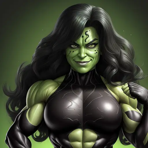 over 1 year ago 1 bodybuilder woman wearing symbiote, She-Hulk, young beautiful face, soft face, full body visible, soft smile, bonkman 0 40