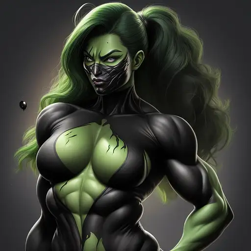 over 1 year ago 1 bodybuilder woman wearing symbiote, She-Hulk, young beautiful face, soft face, full body visible, soft smile, smooth face, bonkman 1 110