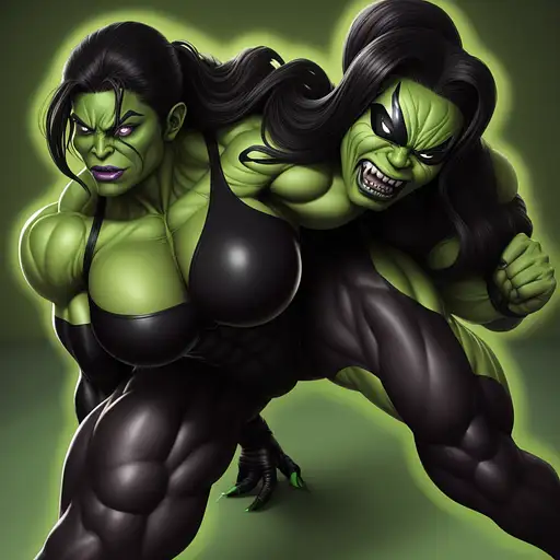 over 1 year ago 1 bodybuilder woman wearing symbiote, She-Hulk, young beautiful face, soft face, full body visible, bonkman 0 55