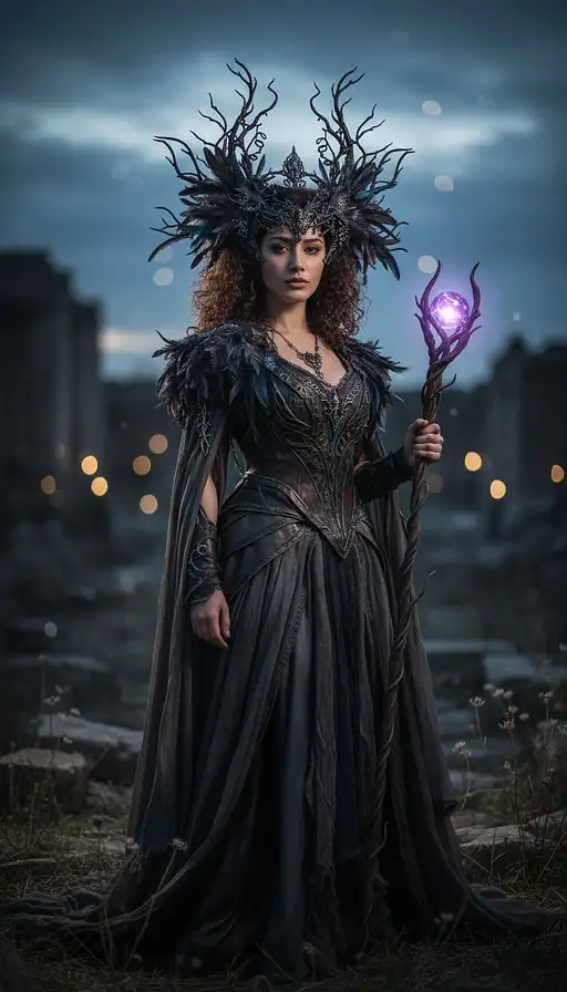 24 days ago A beautiful pale skin girl with intricate metalwork and feathers in her hair, dark fantasy, fantasy, full body portrait, photo realistic, cinematic lighting, bokeh, octane render --ar 1:2 --style raw c4840ea543d 0 26