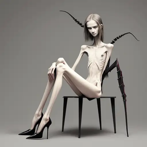 1 year ago a needle-thin anorexic girl with skinny long legs and long skinny calves in high heels with long hooked claws, sitting naked c5236e1bf80 1 38