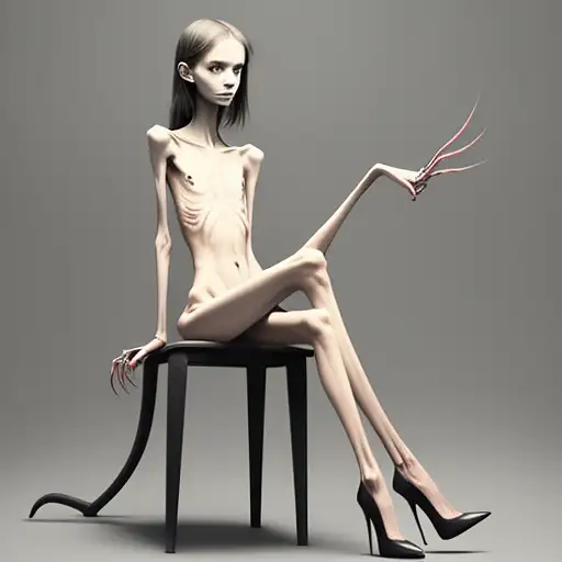 1 year ago a needle-thin anorexic girl with skinny long legs and long skinny calves in high heels with long hooked claws, sitting naked c5236e1bf80 0 20