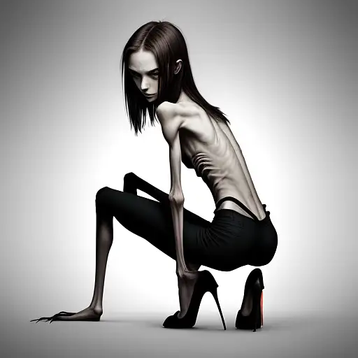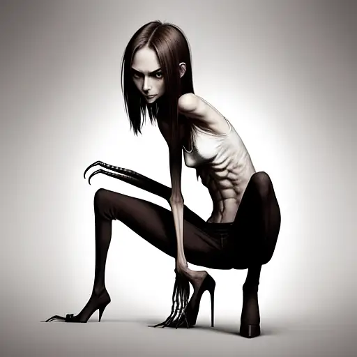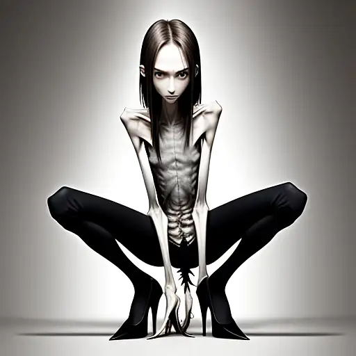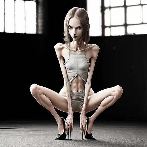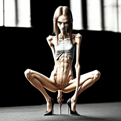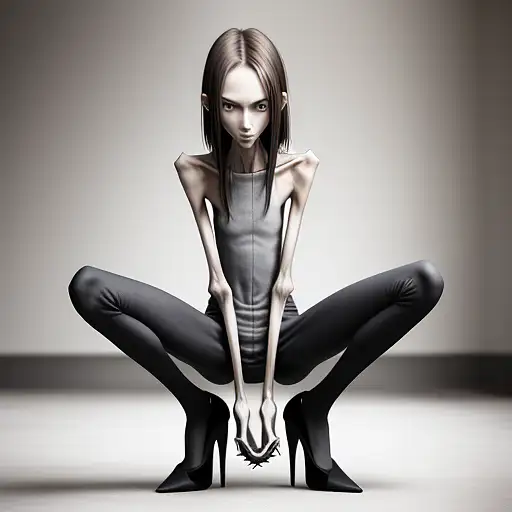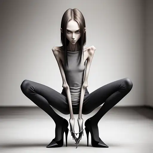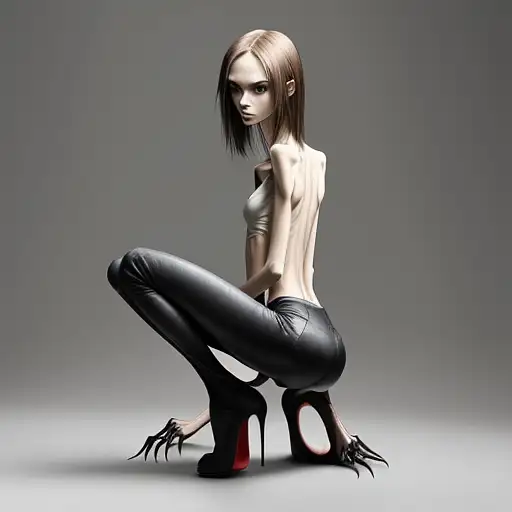 1 year ago squatting position of extreme skinny slender anorexic girl very skinny slender girl, with long curved claws, skinny legs and long skinny calves in high heels, c5236e1bf80 0 32