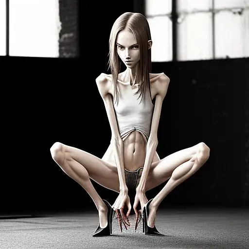 1 year ago squatting position of extreme skinny slender anorexic girl very skinny slender girl, with long curved claws, skinny legs and long skinny calves in high heels, c5236e1bf80 0 24