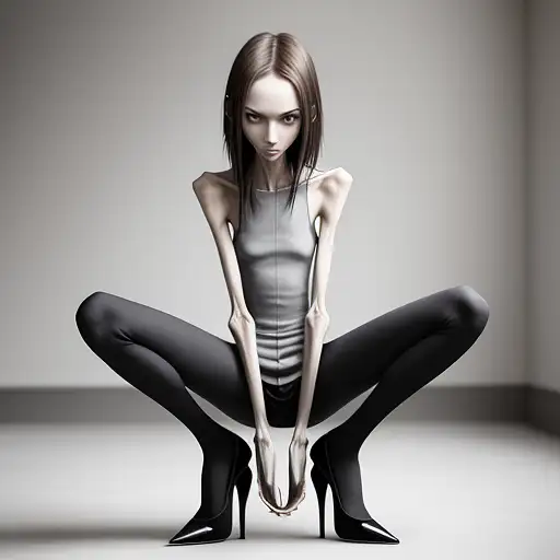 1 year ago squatting position of extreme skinny slender anorexic girl very skinny slender girl, with long curved claws, skinny legs and long skinny calves in high heels, c5236e1bf80 1 61