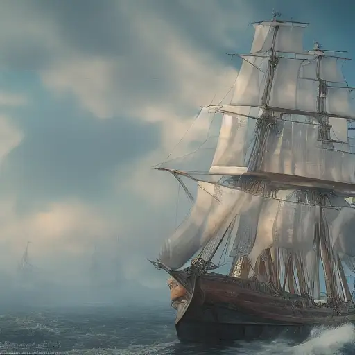 2 years ago Photo of a ultra realistic sailing ship, dramatic light, pale sunrise, cinematic lighting, battered, low angle, trending on artstation, 4k, hyper realistic, focused, extreme details, unreal engine 5, cinematic, masterpiece, art by studio ghibli, intricate artwork by john william turner c81bdca064f 0 77