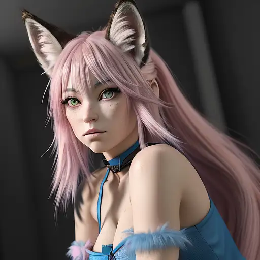 (masterpiece), best quality, unreal engine, 8k, anime style, (beautiful detailed face), (beautiful detailed eyes), cat eyes, slit pupils, feminine foxwoman, long wavy pink and blue foxtail, (fox ears:1.2), pink and blue fox ear fluff, (one fox tail:1.2), (pink and blue multicolored hair), long hair, wavy hair, attractive, cute, natural, collarbone, wide hips, garter belt, sitting on chair, leaning yourself, one leg up, crossed legs, pose feet, feet viewed, looking love, tiptoe, cat teeth, indoors, (kitchen), oven, window, (sunlight), [from side:1.2], ((full body))