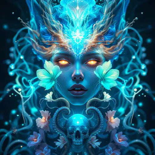 9 months ago Goddess close-up portrait ribcagel. jellyfish phoenix head, nautilus, orchid, skull, betta fish, bioluminiscent creatures, intricate artwork . octane render, trending on artstation,t symmetrical artwork. cinematic, hyper realism, high detail, octane render, 8k cba260ac884 0 32