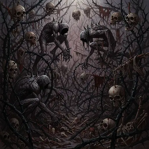 14 days ago demons, thorns, human remains, skulls, John Dyer Baizley, hyper detailed, dark tones, cinematic, dramatic lighting, --no faces --ar 9:21 cd6bd6165d3 0 9