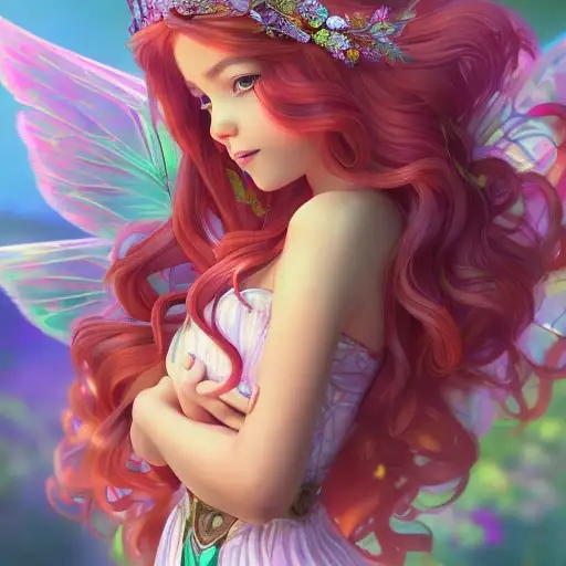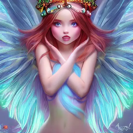 3 years ago Gorgeous fairy girl wearing crown with long neon hair, two wings and a smile, cute red cheeks, unreal engine, highly detailed, artgerm digital illustration, woo tooth, studio ghibli, deviantart, sharp focus, artstation, by Alexei Vinogradov bakery, sweets, gorgeous, emerald eyes, sparkled, 8 k cf4145ee7b9 2 320