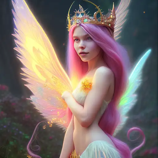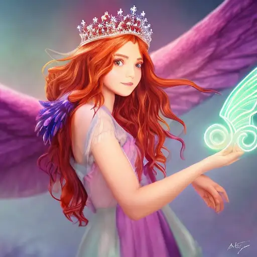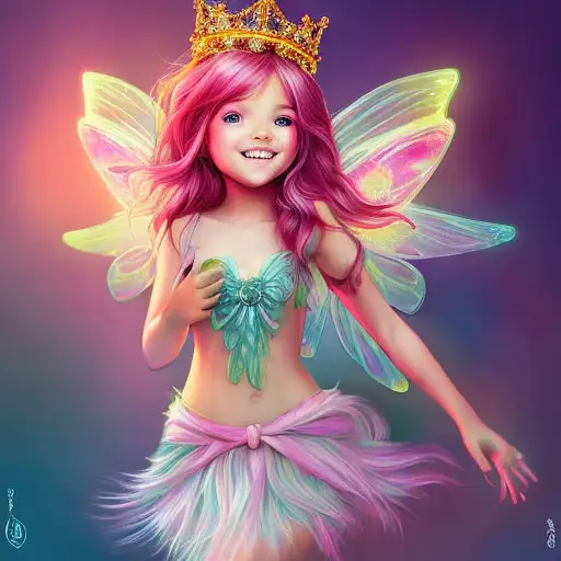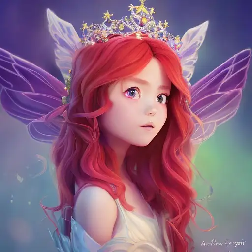 3 years ago Gorgeous fairy girl wearing crown with long neon hair, two wings and a villain's smile, cute red cheeks, unreal engine, highly detailed, artgerm digital illustration, studio ghibli, deviantart, sharp focus, artstation, by Alexei Vinogradov bakery, sparkles, gorgeous, emerald eyes, sparkled, 8 k cf4145ee7b9 2 310