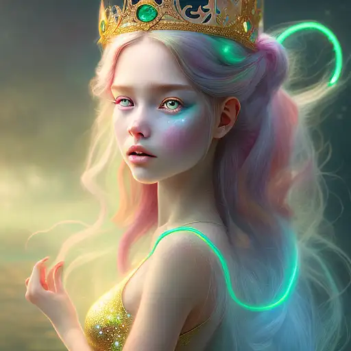 3 years ago Gorgeous fairy girl wearing crown with long neon hair, two wings and a villain's smile, cute red cheeks, unreal engine, highly detailed, artgerm digital illustration, studio ghibli, deviantart, sharp focus, artstation, by Alexei Vinogradov bakery, sparkles, gorgeous, emerald eyes, sparkled, 8 k cf4145ee7b9 0 180