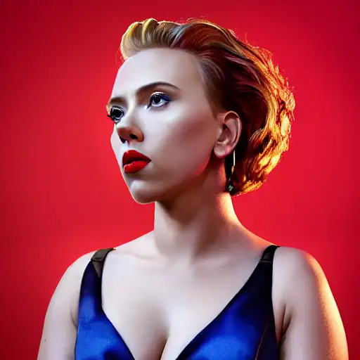 almost 3 years ago Scarlett Johansson portrait photo, sharp look, centered, red lips, frozen movie make up, blue on red, side profile, looking away, serious eyes, 50mm portrait photography, hard rim lighting photography--beta --ar 2:3 --beta --upbeta --beta --upbeta --beta --upbeta cff57d0cced 0 230