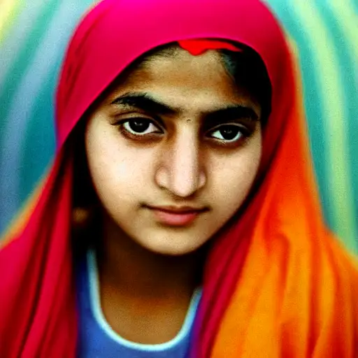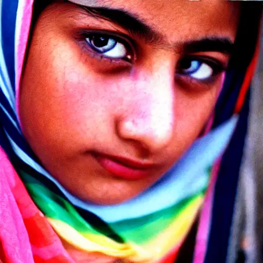 almost 3 years ago a teenage girl of afghani descent with striking rainbow eyes stares at the camera with a deep read head scarf. kodachrome film, 50mm portrait photography, hard rim lighting photography--beta --ar 2:3 --beta --upbeta cff57d0cced 0 110