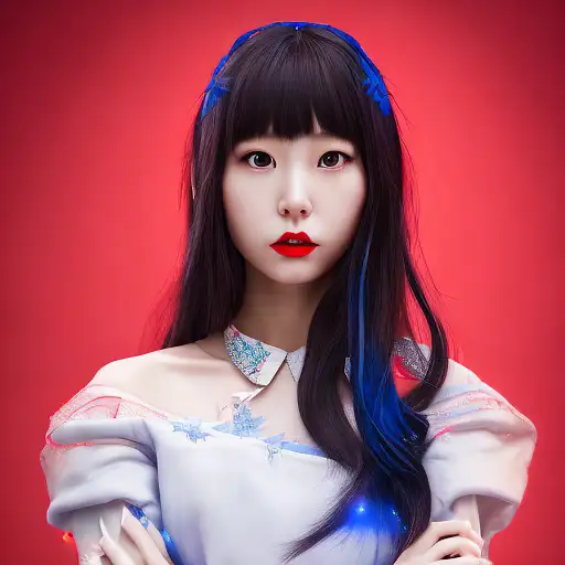 almost 3 years ago saori hara portrait photo, sharp look, front face, centered, soft lips, frozen movie make up, blue on red, side profile, looking away, serious eyes, 50mm portrait photography, hard rim lighting photography--beta --ar 2:3 --beta --upbeta --beta --upbeta --beta --upbeta cff57d0cced 0 330