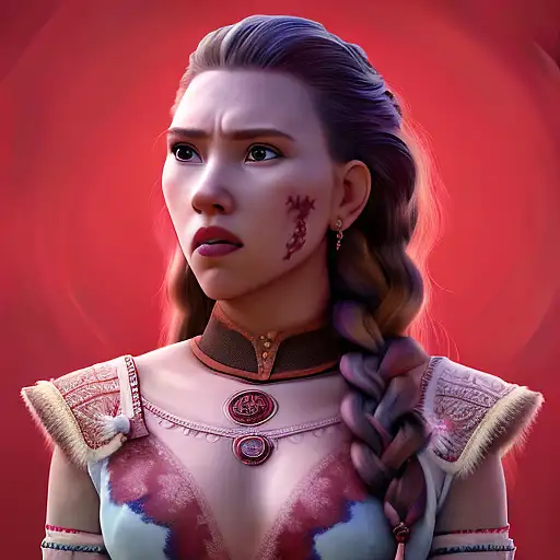 almost 3 years ago Scarlett Johansson portrait photo of a asia old warrior chief, long hair, frozen movie make up, blue on red, side profile, looking away, serious eyes, 50mm portrait photography, hard rim lighting photography--beta --ar 2:3 --beta --upbeta --beta --upbeta --beta --upbeta cff57d0cced 1 540