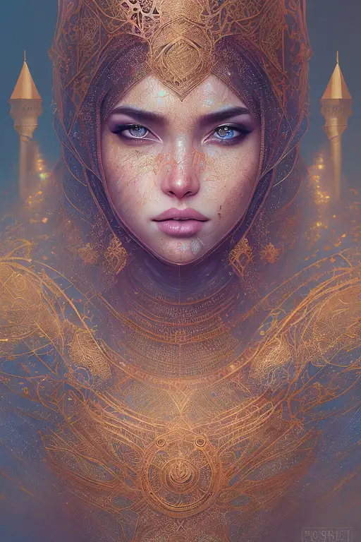 almost 3 years ago portrait of islamic warrior princess| looking sharp |centered| animated | key visual| intricate| highly detailed| breathtaking | precise lineart| vibrant| gold panoramic| cinematic| Carne Griffiths| Conrad Roset cff57d0cced 0 150