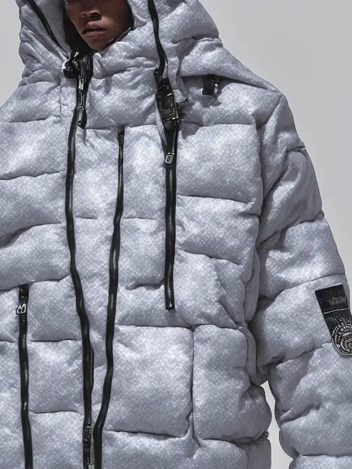 2 years ago milky Fubu winter puffer jacket, design trend, design by kanye west, on a white background, octane, 4K, intricate and detailed texture --ar 4:5 --q 2 cr4shband1coot 0 81