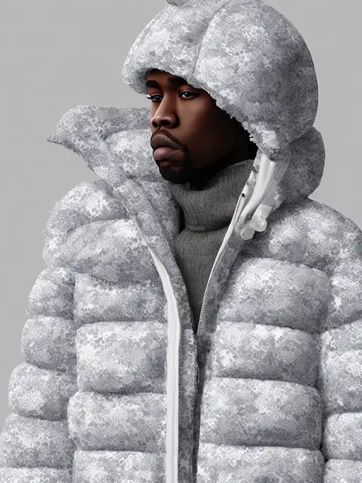 2 years ago milky Fubu winter puffer jacket, design trend, design by kanye west, on a white background, octane, 4K, intricate and detailed texture --ar 4:5 --q 2 cr4shband1coot 0 32