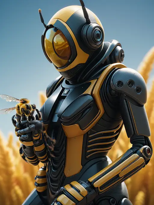 2 years ago portrait of biorobotic and armed bee, 8k full HD, low angle, unreal engine 5, cinematic, masterpiece, insane detail, real photography, bright colors, sun-soaked colours, Fujifilm X-T4, Sony FE 85mm --ar 900:1600 --s 750 --style raw --v 5.2 cr4shband1coot 0 37
